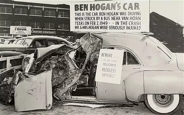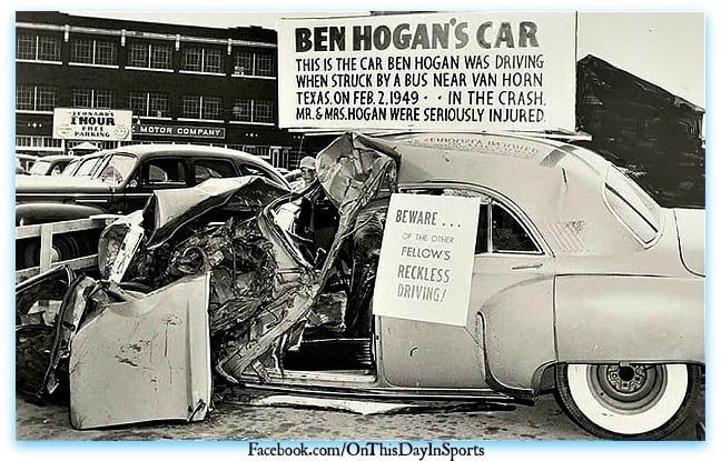 Ben presto, Ben Hogan diventa icona indelebile dello sport statunitense, nonostante due avvenimenti che ne limitano e scandiscono la biografia, come spesso capita alle grandi star: la Seconda Guerra Mondiale che ne sospende l’attività agonistica e lo costringe ad arruolarsi, ed un incidente d’auto che rischia di mandarlo anzitempo sui green stellati.