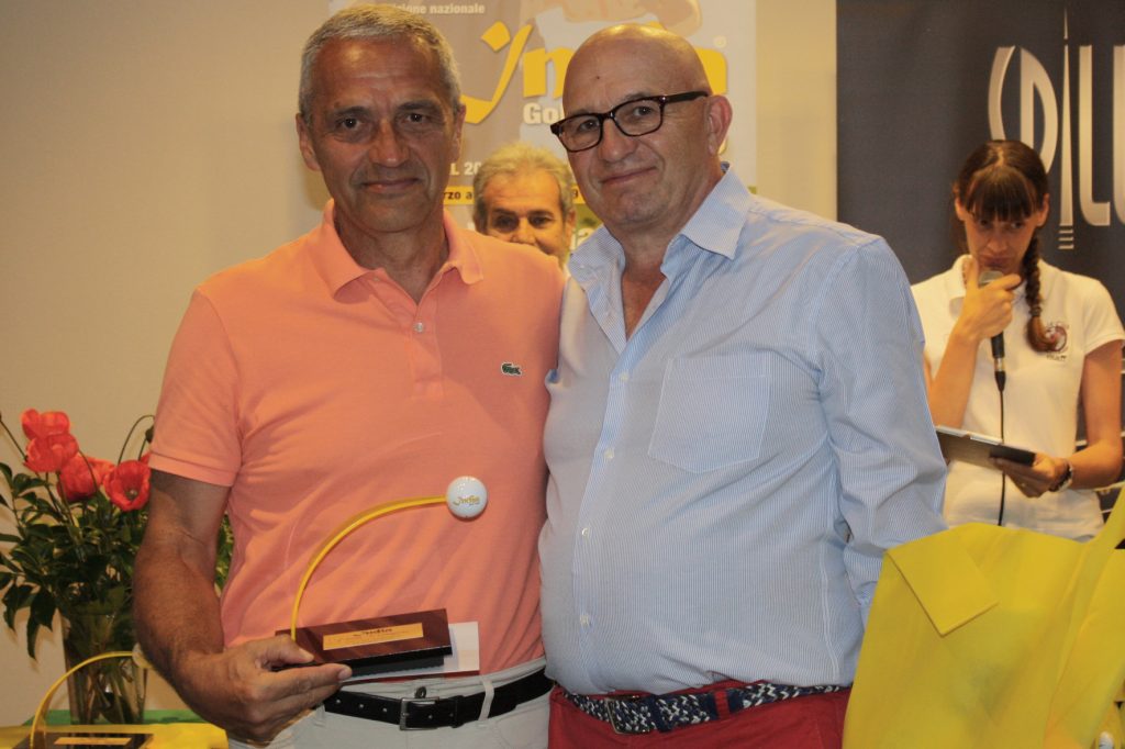 Da sinistra Maurizio Lancetta vincitore del 1° netto di 2a categoria premiato da Adriano Manzoni Responsabile Marketing India Golf Cup