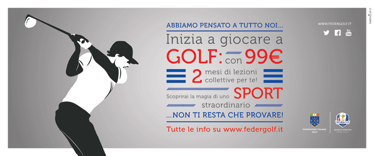 Vediamola nei dettagli. Si tratta di un’altra trovata da parte di un’attivissima FIG che, dopo il sabato del golf sui quotidiani sportivi, ha pensato di stimolare chi non conosce il golf ad avvicinarsi a questo mondo, sfruttando il richiamo del risparmio: solo 99 euro per due mesi di lezioni collettive!