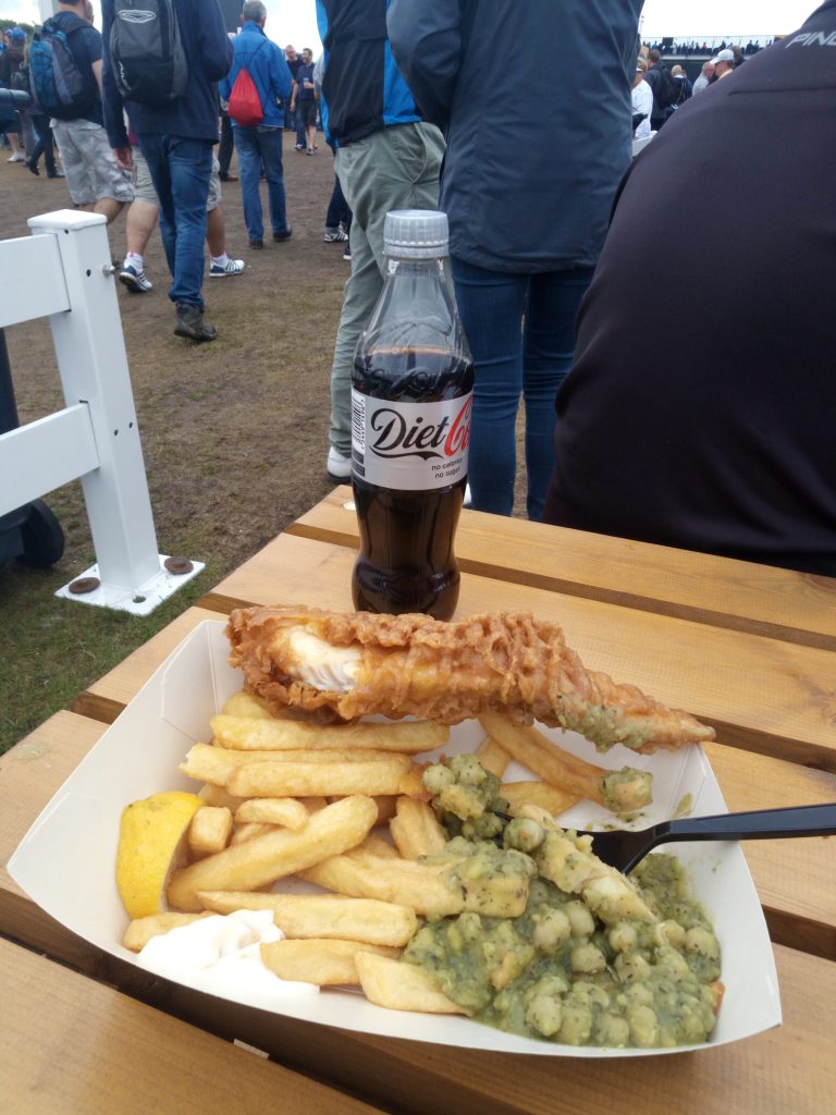 Mi sono concesso un caffè americano ed un muffin, calandomi nelle abitudini inglesi con un occhio ai tee time dei miei giocatori preferiti, grazie alla comoda app dell’Open, precedentemente scaricata.